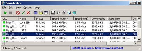 DownTester là một tiện ích hoàn toàn miễn phí, được thiết kế để giúp người dùng dễ dàng đánh giá tốc độ tải dữ liệu từ Internet ở bất kỳ vị trí nào trên toàn cầu. Phần mềm này thực hiện việc đo đạc tốc độ và thời gian cần thiết để tải một tập tin đơn lẻ, cũng như tổng thời gian để tải một loạt các tập tin.