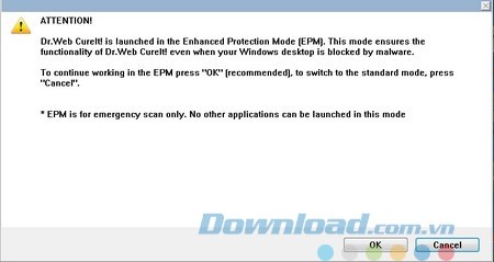 EPM là chế độ được khuyến nghị sử dụng khi máy tính đã bị nhiễm virus. Trong chế độ này, phần mềm sẽ cách ly và tạm dừng tất cả các tiến trình đang chạy trên hệ thống, chỉ kích hoạt quá trình quét virus của Dr.Web CureIt.