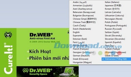 Một điểm nổi bật khác của Dr.Web CureIt là khả năng hỗ trợ hoàn toàn tiếng Việt. Giao diện của phần mềm được thiết kế đơn giản, với chỉ hai tùy chọn chính: ‘Kích hoạt’ để bắt đầu quá trình quét và ‘Phiên bản mới nhất’ để cập nhật phiên bản phần mềm.
