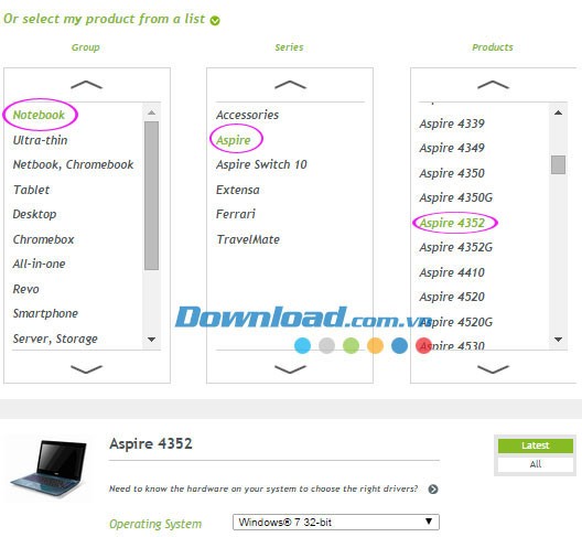 hoặc nhập Product Model của máy: Acer Aspire 4352