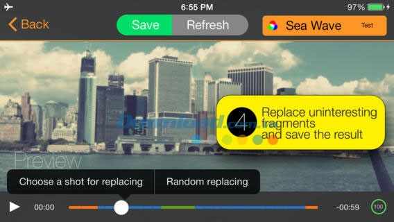 Chạm vào tùy chọn "Refresh" để tạo ra một phiên bản hoàn toàn mới của đoạn phim.