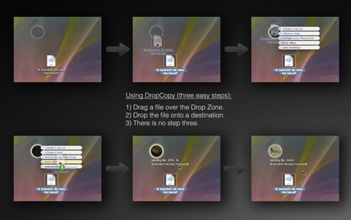 Thiết kế của DropCopy tập trung vào tính trực quan: chỉ cần khởi chạy ứng dụng trên hai hoặc nhiều máy tính (bao gồm cả thiết bị iOS) và chờ đợi sự xuất hiện của khu vực thả. Sau đó, bạn có thể dễ dàng kéo và thả file vào khu vực này để bắt đầu quá trình chia sẻ.