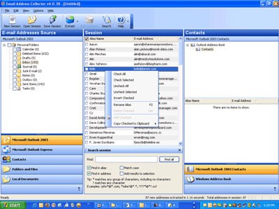 - Email Address Collector hoạt động như thế nào? Nó hoạt động tương tự như một công cụ tìm kiếm chuyên nghiệp nhưng chỉ chuyên săn các địa chỉ email, có khả năng truy cập và thống kê ra toàn bộ mọi địa chỉ email nằm trong Address book của các phần mềm như MS-Outlook, Outlook Express, MSN Messenger, Yahoo Messenger, AOL Messenger cũng như trong nhiều dạng file tài liệu khác như DOC, XLS, PDF, HTM, HTML.