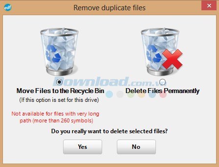 Sau đó, bạn sẽ được yêu cầu lựa chọn giữa việc xóa file vĩnh viễn hoặc chuyển chúng vào thùng rác. Hãy chọn phương án phù hợp và nhấn Yes để xác nhận.