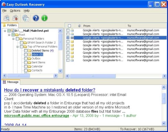 Phần mềm này cung cấp khả năng xem lại các tin nhắn và tệp đính kèm đã khôi phục. Sau đó, chúng có thể được lưu trữ dưới định dạng EML, một định dạng tương thích và dễ dàng nhập khẩu vào các ứng dụng email khác.