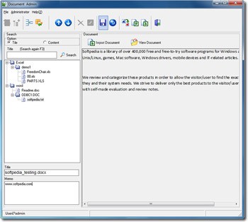 EDocAdmin hỗ trợ việc xuất và nhập toàn bộ thư mục từ máy tính của bạn. Tính năng tìm kiếm mạnh mẽ cho phép bạn nhanh chóng định vị các tập tin theo tên hoặc nội dung.