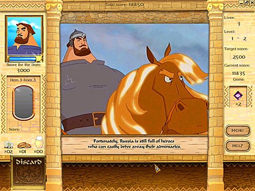 Elias The Mighty là một tựa game lấy cảm hứng từ những câu chuyện huyền thoại về anh hùng dân gian Nga. Trong trò chơi này, nhiệm vụ của bạn là thu thập các vật phẩm liên tục xuất hiện ở phía dưới màn hình và thả chúng vào các vị trí tương ứng ở phía trên.