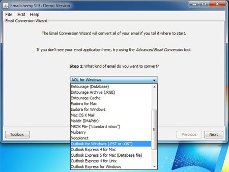 Emailchemy hỗ trợ đọc các định dạng email sau:
