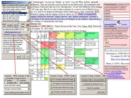 Ngoài ra, eMarking Assistant còn cung cấp các tính năng bổ trợ như tìm kiếm các cụm từ đã chọn trên Google, trong sách hoặc các nghiên cứu khoa học; đánh dấu tất cả các lỗi liên quan đến cụm từ đó; tái sử dụng các cụm từ đã chọn làm bình luận; hoặc quay lại tài liệu đang sử dụng thông qua email.
