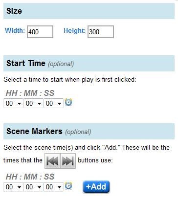 Trong phần Size, bạn có thể tùy chỉnh kích thước khung hiển thị video bằng cách nhập chiều rộng vào ô Width và chiều cao vào ô Height. Mục Start Time cho phép bạn chỉ định thời điểm video bắt đầu phát. Thay vì bắt đầu từ giây 00:00, bạn có thể chọn bất kỳ thời điểm nào khác theo mong muốn.
