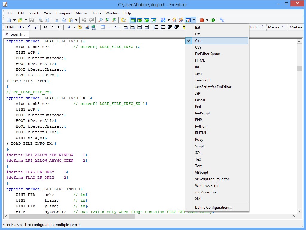 EmEditor Professional hỗ trợ tạo macro sử dụng JavaScript hoặc VBScript.