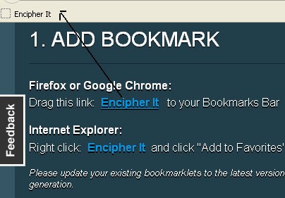 Đối với người dùng Firefox và Google Chrome, quá trình thêm bookmark rất đơn giản. Chỉ cần nhấp vào liên kết Encipher It và kéo thả nó vào thanh Bookmark.