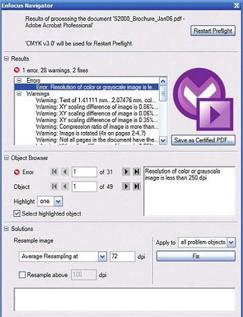 Lỗi thường gặp trong file PDF là các ký tự bị lỗi, do đó plugin này cung cấp cho Acrobat một chức năng mới "Convert text to outline" giúp chuyển đổi từng ký tự bằng hộp thoại Enfocus Inspector hoặc áp dụng cho toàn bộ tài liệu thông qua hộp thoại Action List. Tuy nhiên, sau khi thực hiện, các ký tự trong tài liệu sẽ không thể chỉnh sửa về kiểu chữ hoặc kích thước như trước.