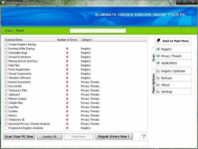 Vì phần lớn máy tính (95%) đều chứa các lỗi ẩn khó phát hiện, và khi phát hiện ra thì thường đã quá muộn để khắc phục. Error Repair Professional giúp bạn phát hiện và sửa chữa những lỗi này một cách nhanh chóng và hiệu quả.