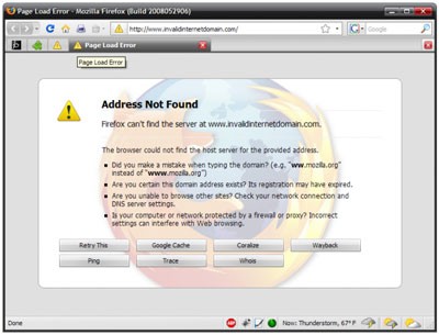 ErrorZilla là một tiện ích mở rộng bổ sung các tùy chọn hỗ trợ người dùng truy cập các trang web không hoạt động tại thời điểm hiện tại. Các tùy chọn này bao gồm thử lại, truy cập bản lưu trữ Google Cache, Coralize, Wayback Machine, v.v.