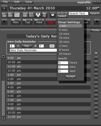 Tại giao diện chính của chương trình, hãy chọn ngày tháng mong muốn ở mục New Daily Reminder. Bạn có thể tùy chỉnh đến từng giờ để đảm bảo tính chính xác cho lịch trình của mình.
