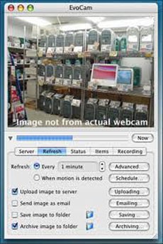 Bạn có thể đăng tải các bức ảnh từ EvoCam thông qua FTP hoặc SFTP lên các máy chủ web từ xa, hoặc gửi email ảnh dưới dạng tệp đính kèm MIME.