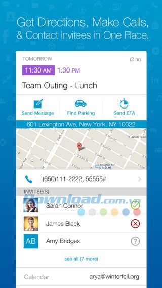 Phản hồi các lời mời từ các mạng xã hội như Facebook, GCal và Evite.