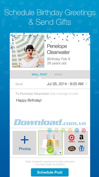 Lên kế hoạch chúc mừng sinh nhật với hình ảnh tùy chỉnh và thẻ quà tặng qua Email hoặc Facebook .