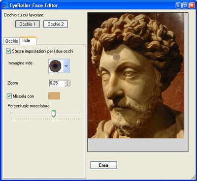 Phần Iris cho phép bạn chọn hình ảnh mắt mới để thay thế, tạo hiệu ứng di chuyển theo chuột. Trong đó, Iris Image là hình ảnh mắt được chọn từ thư viện của EyeRoller, còn Zoom là tùy chọn để điều chỉnh kích thước cho vừa với vùng mắt đã chọn.