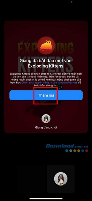 Bước 5: Khi trò chơi được khởi động, tất cả những người trong cuộc gọi sẽ nhận được thông báo mời tham gia. Họ chỉ cần nhấn vào nút Tham gia trên thiết bị của mình để đồng ý tham gia trò chơi.