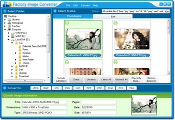 Nếu bạn cần chuyển đổi một lượng lớn hình ảnh, tính năng xử lý hàng loạt của Factory Image Converter sẽ là một giải pháp tối ưu. Chỉ cần chọn các tập tin cần chuyển đổi và thiết lập các thông số mong muốn, chương trình sẽ tự động thực hiện toàn bộ quá trình.