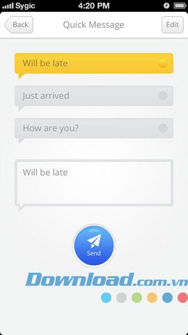 Việc sử dụng tin nhắn ngắn gọn, súc tích và lịch sự là một cách giao tiếp hiệu quả. Trẻ em sẽ thích sử dụng tin nhắn hơn là gọi điện để thông báo tình hình. Family by Sygic for Android cho phép người dùng gửi tin nhắn miễn phí đến tất cả các thành viên trong gia đình, bất kể họ sử dụng iPhone hay điện thoại Android.