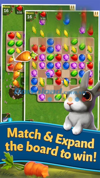 - Bunnies (thỏ ăn cà rốt): Chiếm nhiều diện tích quan trọng trong nông trại. Nhiệm vụ của bạn là xóa thỏ khỏi bàn chơi để bảo vệ cà rốt.