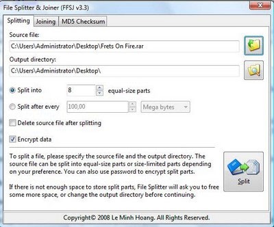 Xem thêm: FFSJ: Fastest File Splitter and Joiner 3.3 - Chia và Nối File Nhanh Chóng .