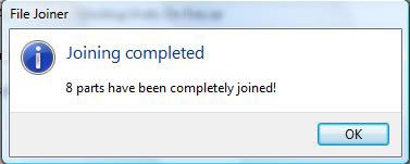 Nhấp nút Join để bắt đầu ghép file (nhập mật khẩu nếu có). Một hộp thoại sẽ xuất hiện khi quá trình kết thúc.