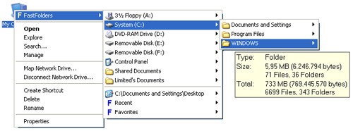 Để sử dụng, người dùng chỉ cần thực hiện thao tác nhấp chuột phải vào biểu tượng tương ứng và lựa chọn FastFolders từ menu hiện ra.