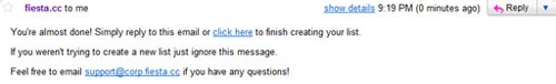 Bạn sẽ ngay lập tức nhận được một email xác nhận từ Fiesta. Hãy nhấp vào liên kết trong email này để xác nhận việc tạo nhóm.