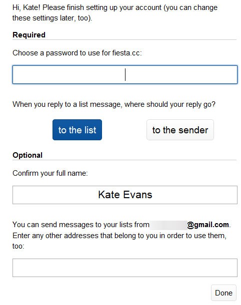Sau đó, hệ thống sẽ yêu cầu bạn thiết lập mật khẩu bảo vệ cho nhóm và nhập thêm các địa chỉ email khác mà bạn muốn thêm vào danh sách chung này. Sau khi hoàn tất, hãy nhấn Done để lưu lại.