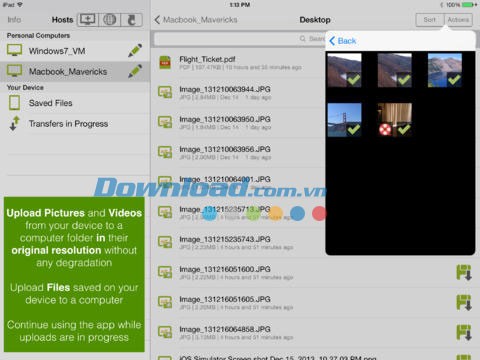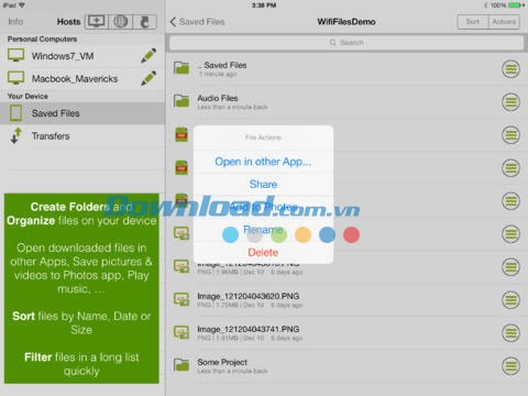 - Duyệt các thư mục và tải tập tin, cũng như toàn bộ thư mục từ máy tính Mac và Windows về thiết bị di động của bạn.