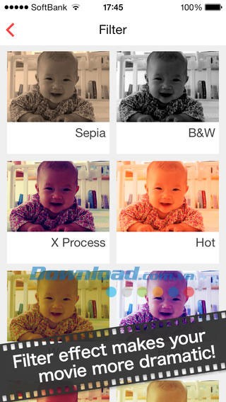 Áp dụng 10 loại hiệu ứng bộ lọc video khác nhau.