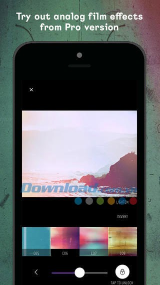 Mục Signature cung cấp nhiều bộ lọc hơn nữa, tạo ra các hiệu ứng đặc biệt cho ảnh, từ S01 đến S28, tương đương với 28 bộ lọc Signature. Bạn có thể nhấn vào Tap to Unlock để nâng cấp lên Filterloop Pro thông qua giao dịch mua trên tài khoản iTunes.