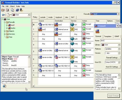 Firewall Builder giúp người quản trị hệ thống đơn giản hóa việc quản lý dữ liệu mạng và kiểm soát tường lửa, nhờ vào giao diện đồ họa trực quan và thao tác kéo thả tiện lợi.