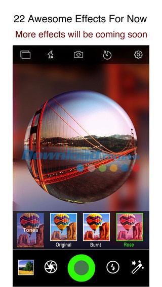 - Thay đổi ống kính, bối cảnh pha lê, đèn flash màu và hiệu ứng phim ảnh chỉ với một thao tác chạm đơn giản.