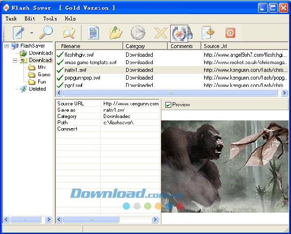 - Flash Saver sở hữu công cụ quản lý các file flash đã download một cách mạnh mẽ và tiện lợi.