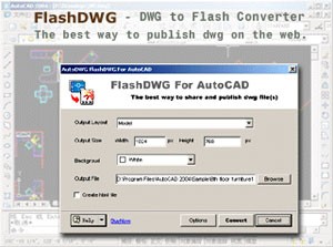 - Làm thế nào để chuyển đổi các file DWG, DXF của AutoCAD thành file flash SWF? Bạn nhấn nút “Browser” và chọn file DWG, DXF cần chuyển đổi để mở đường dẫn trong ô “Input DWG Files”, sau đó chọn “Model” ở ô “Output Layout”. Chỉnh độ phân giải ở ô “Output Site” và chọn màu nền trong ô “Background”. Chọn vị trí lưu file SWF ở ô “Output File” rồi nhấn nút “Convert” để bắt đầu chuyển đổi.