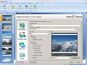 FlashSpring Pro cung cấp nhiều phương pháp khác nhau để tạo ra các thuyết trình Flash. Bạn có thể tạo một đoạn Flash hoàn chỉnh bao gồm toàn bộ các slide, hoặc xuất từng slide thành một đoạn phim riêng biệt.