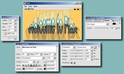 Giao diện chính của phần mềm Flax gồm 4 hộp thoại: Movie properties, Text properties, Fx Properties và hộp thoại Flax nơi hiển thị kết quả.
