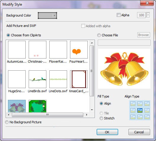 Để thêm hiệu ứng Flash vào trang bìa, bạn nhấn Add Flash và chọn một mẫu có sẵn hoặc chọn file Flash từ máy tính bằng cách đánh dấu vào ô Choose File và nhấn Browse.
