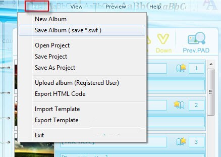 - Save Album: Lưu album dưới dạng file SWF.