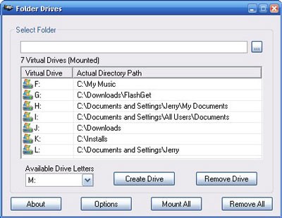 Sau khi hoàn tất tải xuống, cài đặt và kích hoạt chương trình, bạn có thể bắt đầu tạo các ổ đĩa ảo. Chỉ cần nhấp vào nút tương ứng hoặc nhập trực tiếp đường dẫn của thư mục mong muốn vào ô Select Folder.