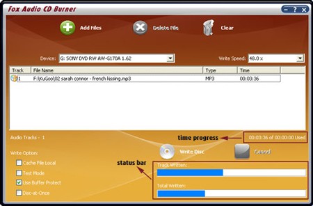 Fox Audio CD Burner là một phần mềm cho phép bạn tạo đĩa CD chất lượng cao, có thể chơi trên bất kỳ máy nghe nhạc nào, hỗ trợ tất cả các đầu ghi CD phổ biến và các kích cỡ đĩa CD DAO & TAO.