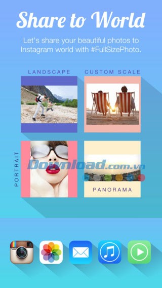 Full Size Photo Free for iOS là ứng dụng được phát triển bởi những người dùng đam mê Instagram , nhằm giải quyết nhu cầu đăng tải ảnh với kích thước gốc mà không cần phải cắt xén thành định dạng vuông.