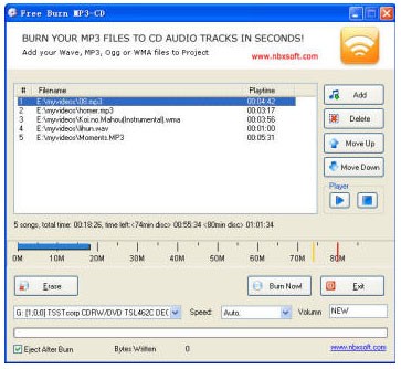 Nếu bạn đang tìm kiếm một giải pháp để ghi các tập tin MP3 hoặc WMA đã được lựa chọn cẩn thận lên đĩa CD, thì Free Burn MP3-CD chính là công cụ phù hợp nhất.