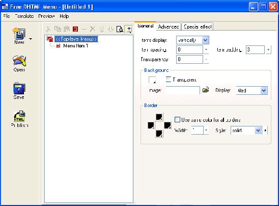 - Hỗ trợ tùy chỉnh trình duyệt để xem trước DHTML Menu.