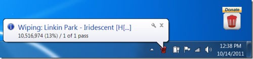 Tiến trình xóa file cũng được trực quan hóa thông qua biểu tượng chương trình nằm ở khu vực khay hệ thống.